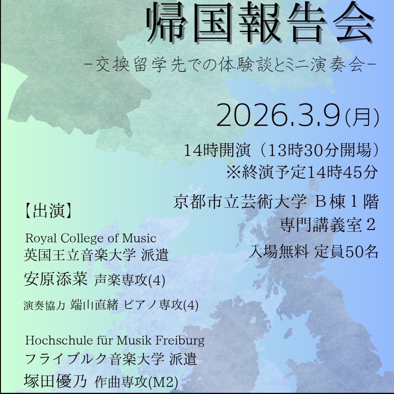 留学までのステップ Exchange Programs for Faculty of Fine Arts Exchange Programs for Faculty of Music