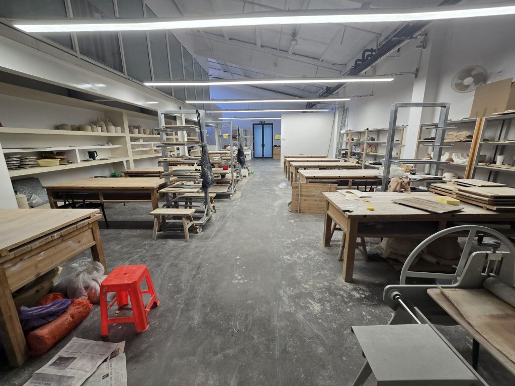専攻内の制作室の利用に関しても、授業単位での管理が明確に行われており、元々割り当てられた授業以外での使用には一定の制限があります。制作環境は常にプロジェクト単位で運用されており、履修内容に応じて使用可能な設備や空間が切り替わるなど、制度的でシステマチックな構造であるという印象を受けました。